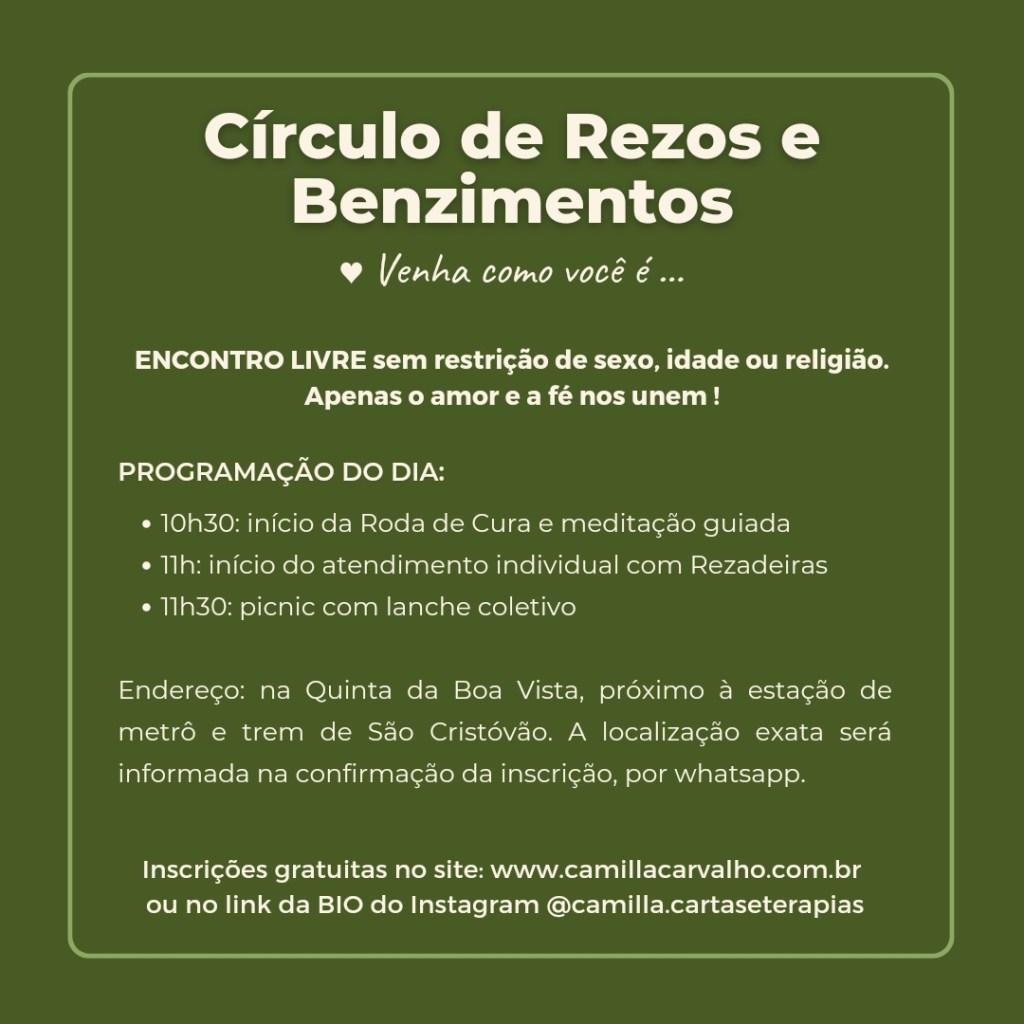 Será na Quinta da Boa Vista, em um cantinho calmo e cheio de natureza e muito amor da Mãe Terra! A localização exata será informada na confirmação da inscrição, por whatsapp.