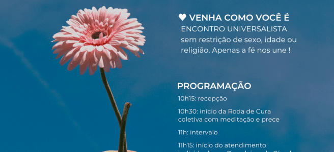 Venha como você é. Nosso evento é completamente gratuito, universalista, sem restrição de sexo, política, religião e idade. Inscrições gratuitas aqui